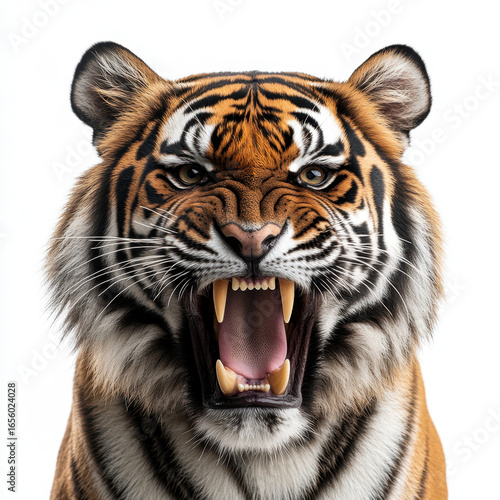 © Firuza, Fototapeta premium Tiger baring teeth in wide open mouth.