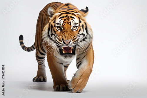 Naklejka premium Tiger Charging on a White Background. Beautiful feline portrait
