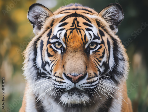 Fototapeta premium Tiger Close-Up in Natural Habitat, Intense Tiger Portrait View