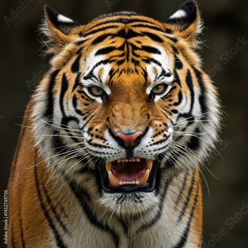 © Zainul, Naklejka premium Tiger Close Up Showing Teeth and Striking Pattern on Fur