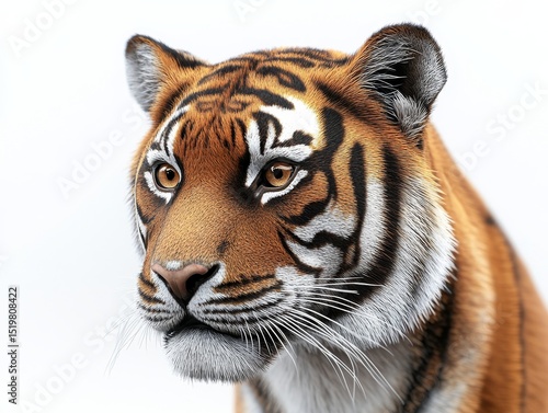 Naklejka premium Tiger close-up with focused expression on white