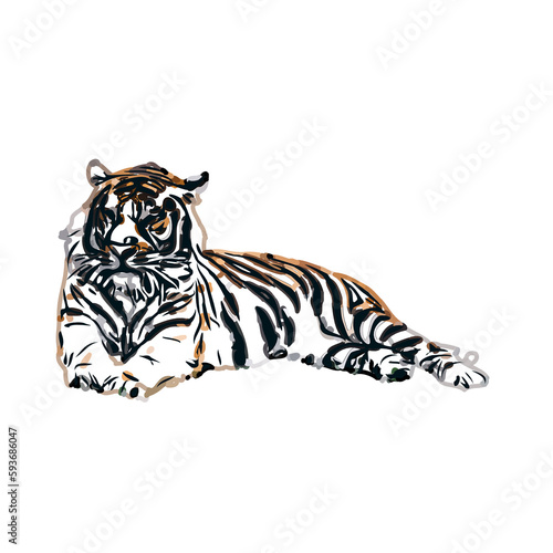 © Yuas, Naklejka premium tiger color sketch with transparent background