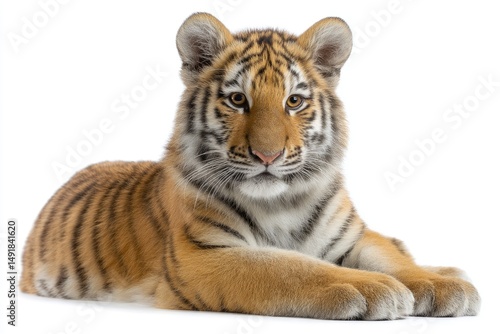 © Dzikrul Husnani, Obraz premium Tiger Cub Lying Down Isolated on White Background