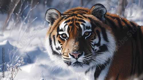 Fototapeta premium Tiger face. Siberian Tundra. Illustration