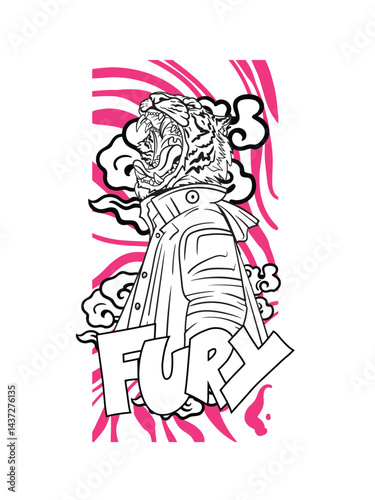 © prutamin_C, Fototapeta premium tiger fighter with japanese doodle style
