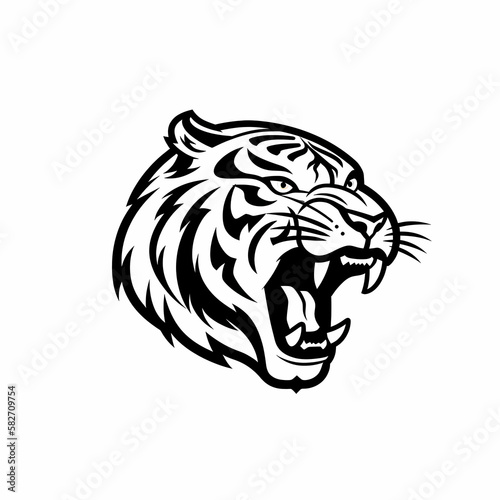 © premiumdesign, Fototapeta premium Tiger Head Black and White Isolated White. Generative AI