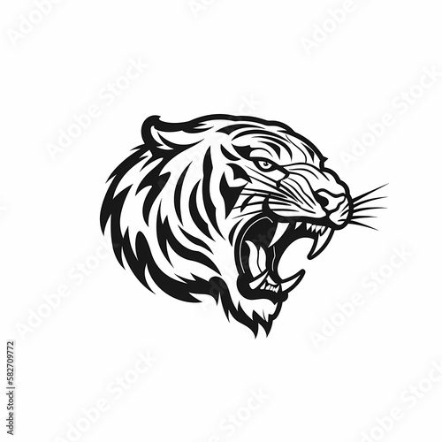 © premiumdesign, Fototapeta premium Tiger Head Black and White Isolated White. Generative AI
