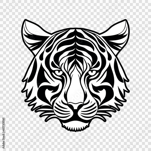 Obraz premium Tiger head black and white vector icon.
