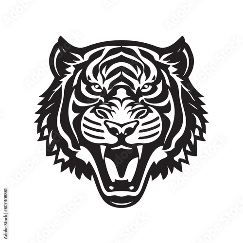 © magr80, Obraz premium Tiger head black and white vector icon.