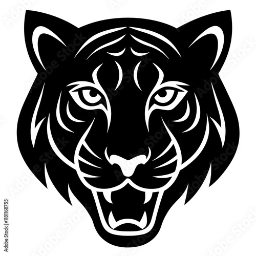 Obraz premium tiger head black silhouette vector, Simple silhouette Design vector icon with...