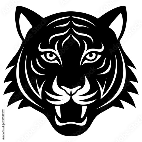 Obraz premium Tiger head black silhouette vector, Simple silhouette Design vector icon with...
