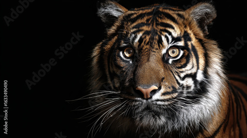 Fototapeta premium Tiger Head Intense Gaze Studio Lighting High Contrast