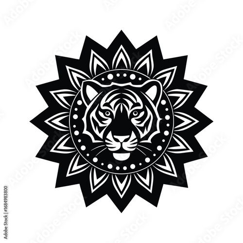 Fototapeta premium Tiger Head Mandala Design: Black and White Tribal Style Vector Illustration