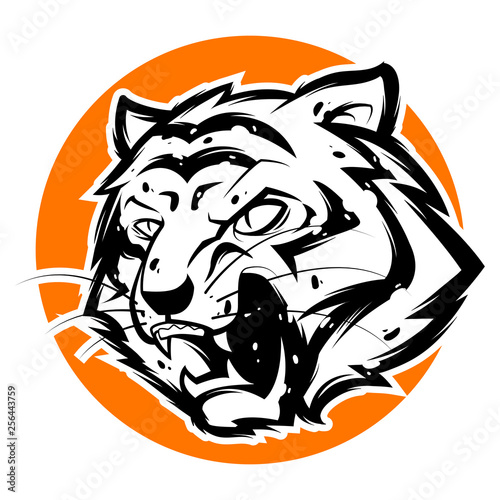 © VECTORVICTRORY, Obraz premium tiger head mascot black and white illustration vector esports logo
