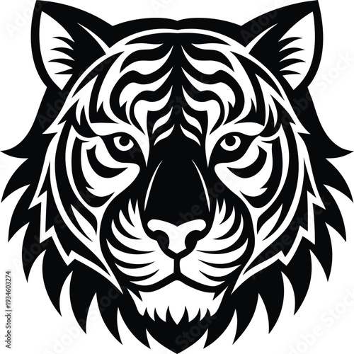 © Vector Art, Fototapeta premium tiger head mascot logo black and white vector