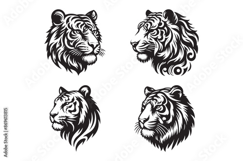 © GFX MITU, Fototapeta premium Tiger head silhouette vector art illustration