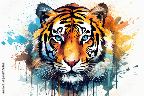 © Prime Lens, Naklejka premium Tiger head watercolor illustration style