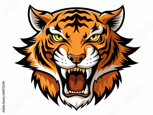 © Sumondesigner_42, Obraz premium Tiger head with its jaw open vector illustration