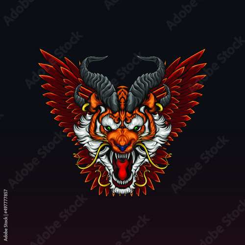 © Kentot Sanshino, Obraz premium Tiger head with wings behind