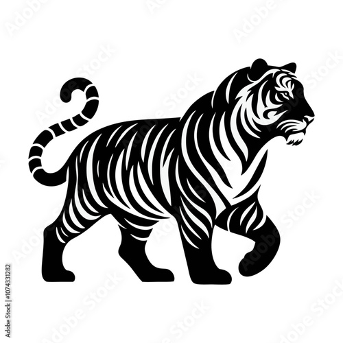 © JimzStd, Naklejka premium tiger icon silhouette black white