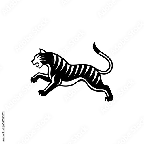 © Sumondesigner_42, Obraz premium Tiger jumping Logo. Silhouette of tiger jumping vector illustration