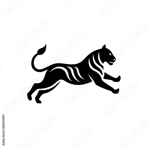 © Sumondesigner_42, Obraz premium Tiger jumping Logo. Silhouette of tiger jumping vector illustration