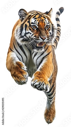 Naklejka premium Tiger leaping, fierce, action shot, wildlife, nature