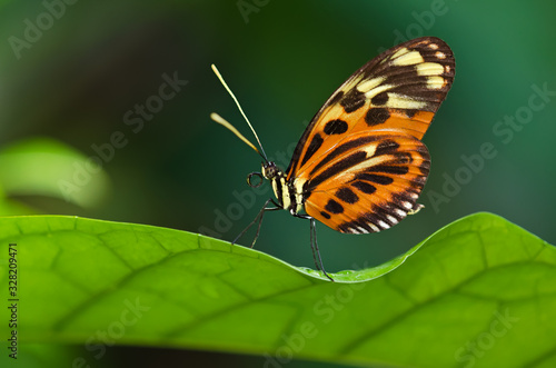 Obraz premium Tiger Longwing butterfly (Heliconius ismenius) perched on leaf