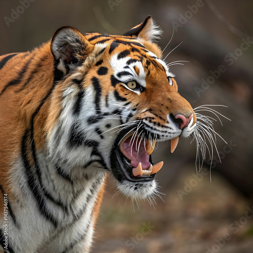 © Urwa, Fototapeta premium tiger looking with the open mouth closeup