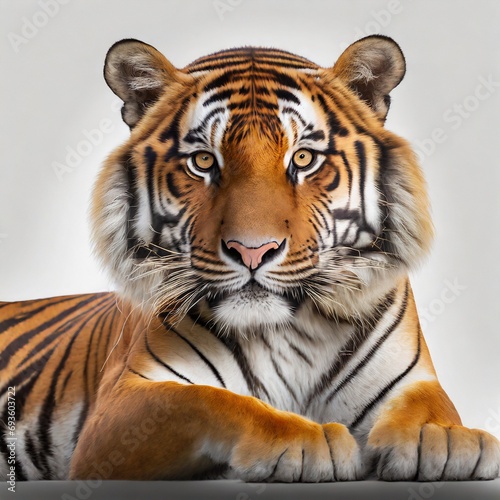 © adobedesigner, Fototapeta premium Tiger lying down isolated on white background
