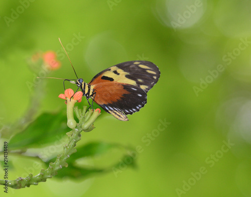 © cratervalley, Fototapeta premium Tiger mimic butterfly feeding on pink wild flowers flowers