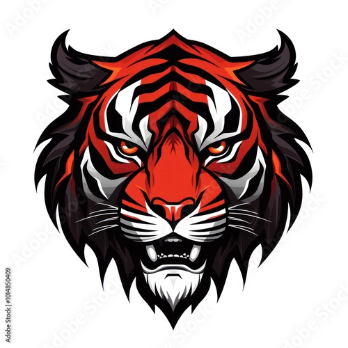 Fototapeta premium Tiger on White Background. Black and Red colors
