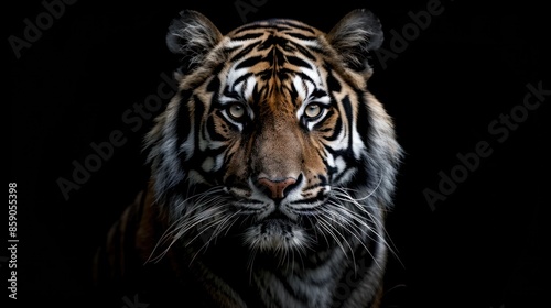 © ROY, Fototapeta premium Tiger Portrait Against a Dark Background