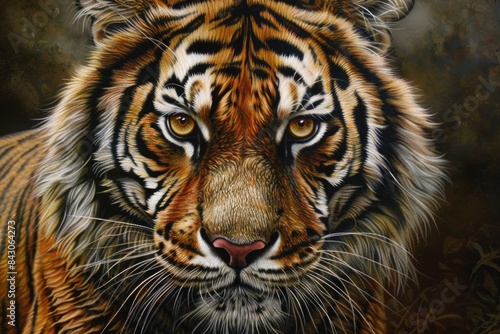 Fototapeta premium Tiger Portrait - Majestic Wild Cat in Nature Environment