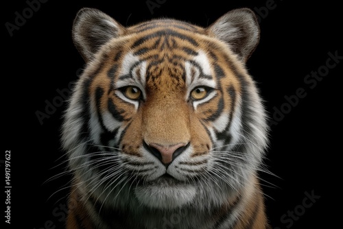 Fototapeta premium Tiger Portrait on Black Background Detailed Wildlife Close-up