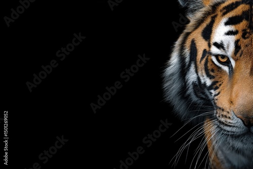 © ArtmediaworX, Fototapeta premium Tiger portrait over the black background with copy space. Generative Ai