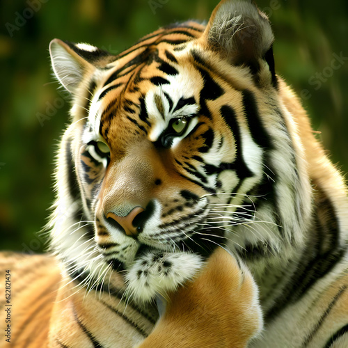 Fototapeta premium Tiger portrait with a pondering pose, thinking and considering