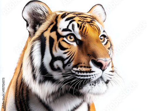 © Dedhie, Naklejka premium Tiger portrait with vibrant colors and striking features against a white background