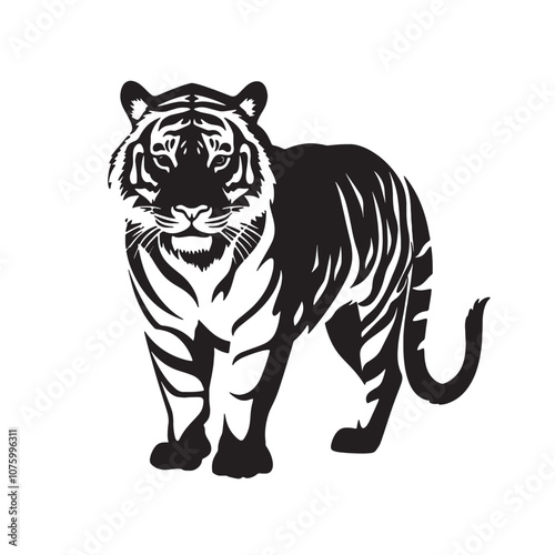 © SourceOfPhotos, Naklejka premium Tiger pose vector silhouette flat style