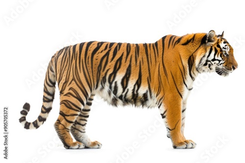 © Popelniushka, Naklejka premium Tiger Profile. Majestic Side View of Big Cat, Wildcat Standing Isolated on White Background