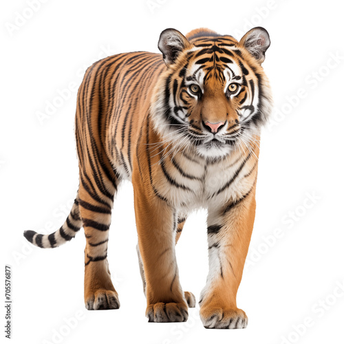 © Dmytro Titov, Naklejka premium Tiger prowling, approaching and looking at the camera, isolated