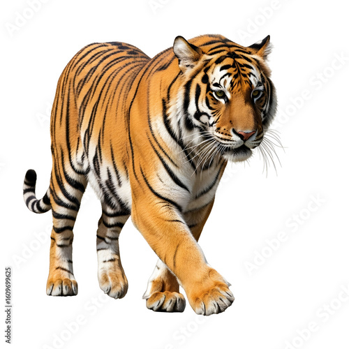 Fototapeta premium Tiger prowling isolated on black background