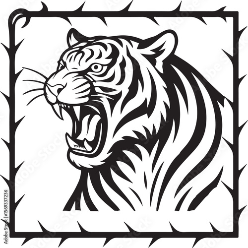 Fototapeta premium Tiger Roar Frame Fierce Animal Enclosed designed Border vector image