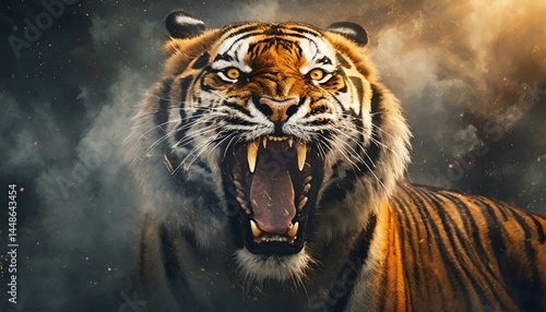 © allali, Naklejka premium Tiger roaring in dust and smoke