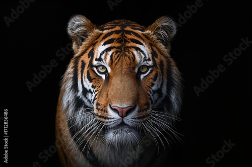 Fototapeta premium Tiger's portrait against a dark backdrop