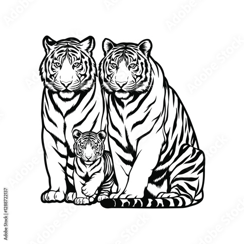 Naklejka premium Tiger Set Silhouette With white background