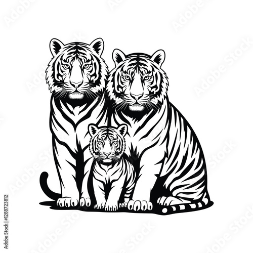 © HMS, Fototapeta premium Tiger Set Silhouette With white background