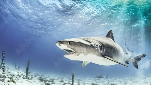 © puntel, Fototapeta premium Tiger Shak in the Bahamas with sunlight in the back