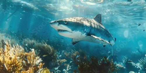 © AkuAku, Fototapeta premium Tiger Shark also known as Galeocerdo Cuvier