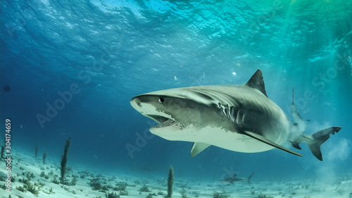 © puntel, Fototapeta premium Tiger Shark in Tiger Beach, Bahamas